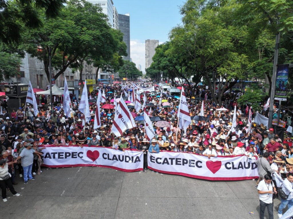 El recorrido de los ecatepenses incluyó calles emblemáticas como Juárez, Eje Central Lázaro Cárdenas y 5 de Mayo, hasta llegar a la explanada del Zócalo, donde presenciaron el balance del primer año de gobierno de Sheinbaum Pardo.