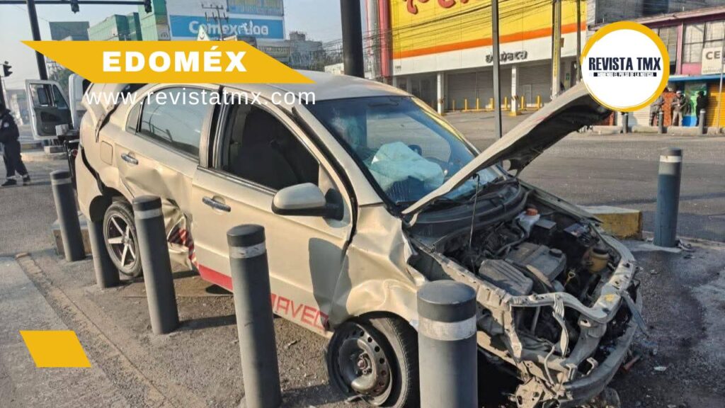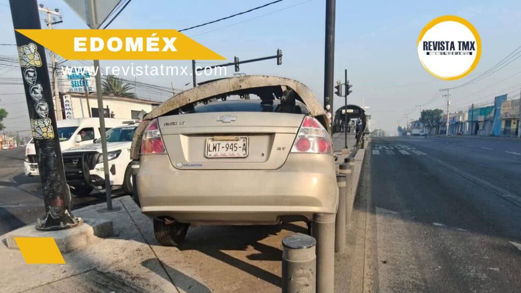 El vehículo de la marca Chevrolet, modelo Aveo, terminó sobre el camellón central y contra los postes metálicos de protección de la estación, sin invadir carriles de circulación ni generar afectaciones al servicio del sistema Mexibús.