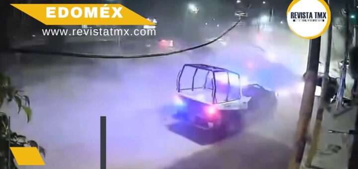 Video.- Patrulla de Nezahualcóyotl cae en socavón durante intensa persecución